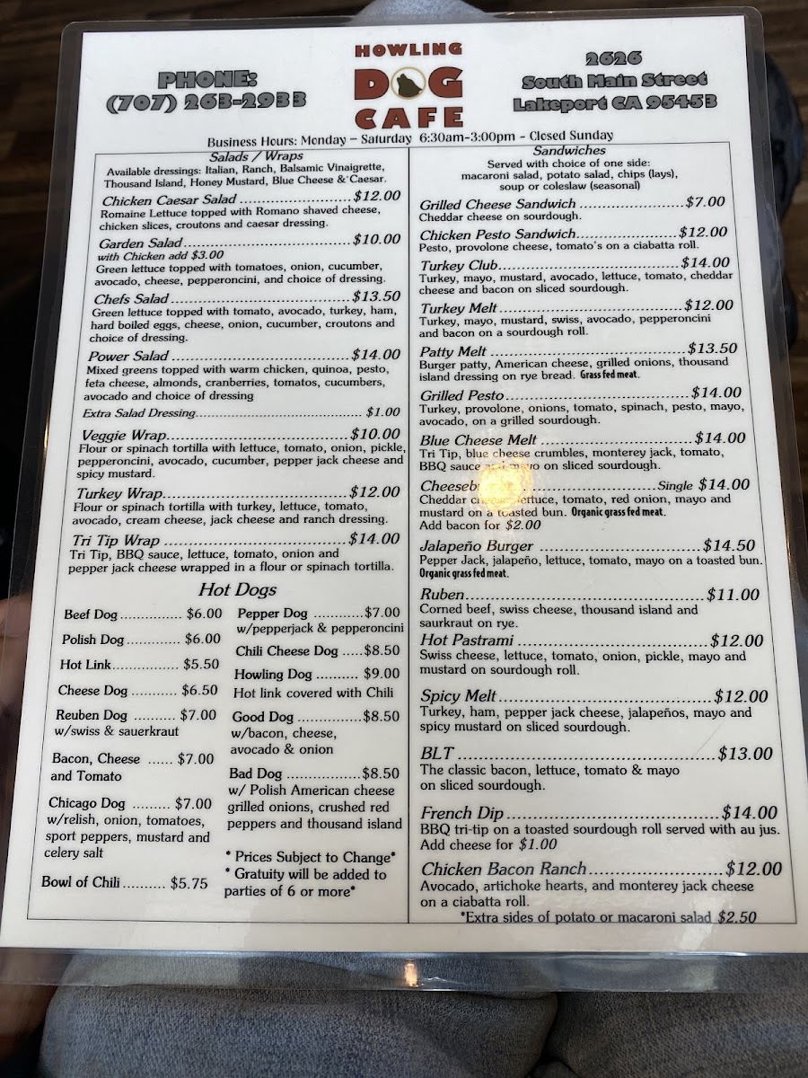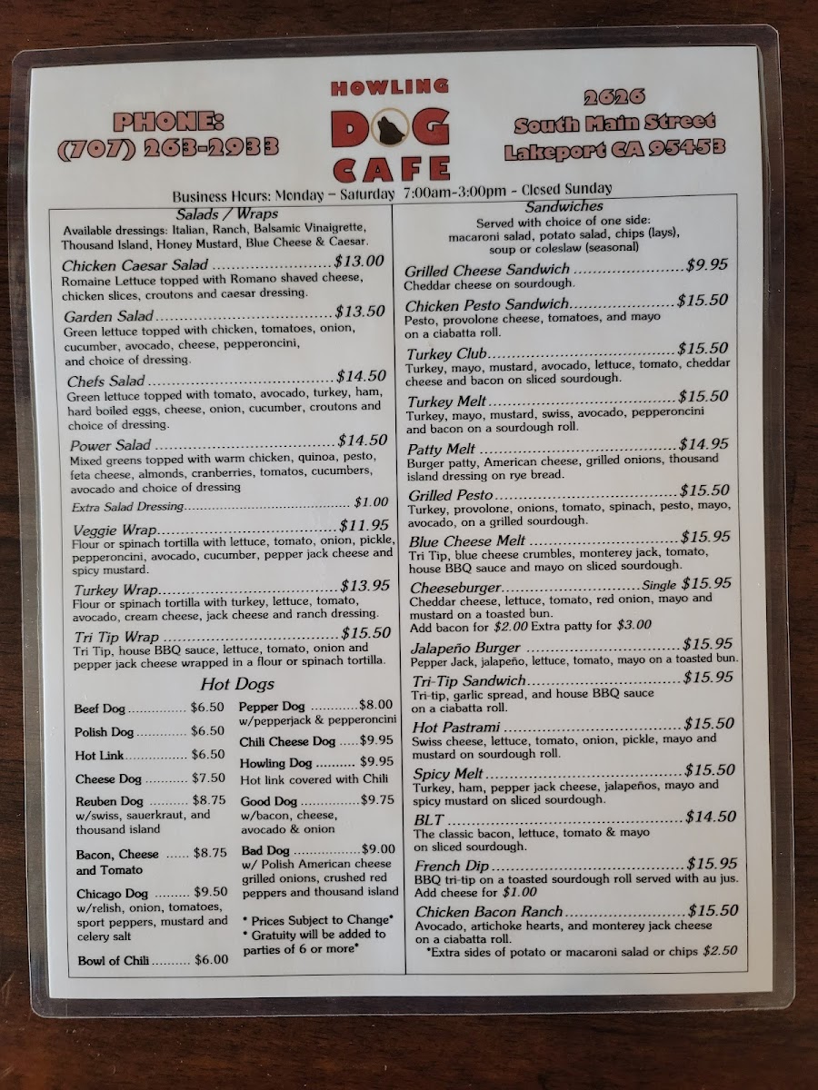 The Howling Dog Cafe offers a straightforward, welcoming menu that suits casual meals throughout the day. Its selection focuses on comforting bites, from hearty breakfast options like the breakfast burrito and scrambled eggs to satisfying sandwiches and wraps that work well for lunch or a laid-back dinner.